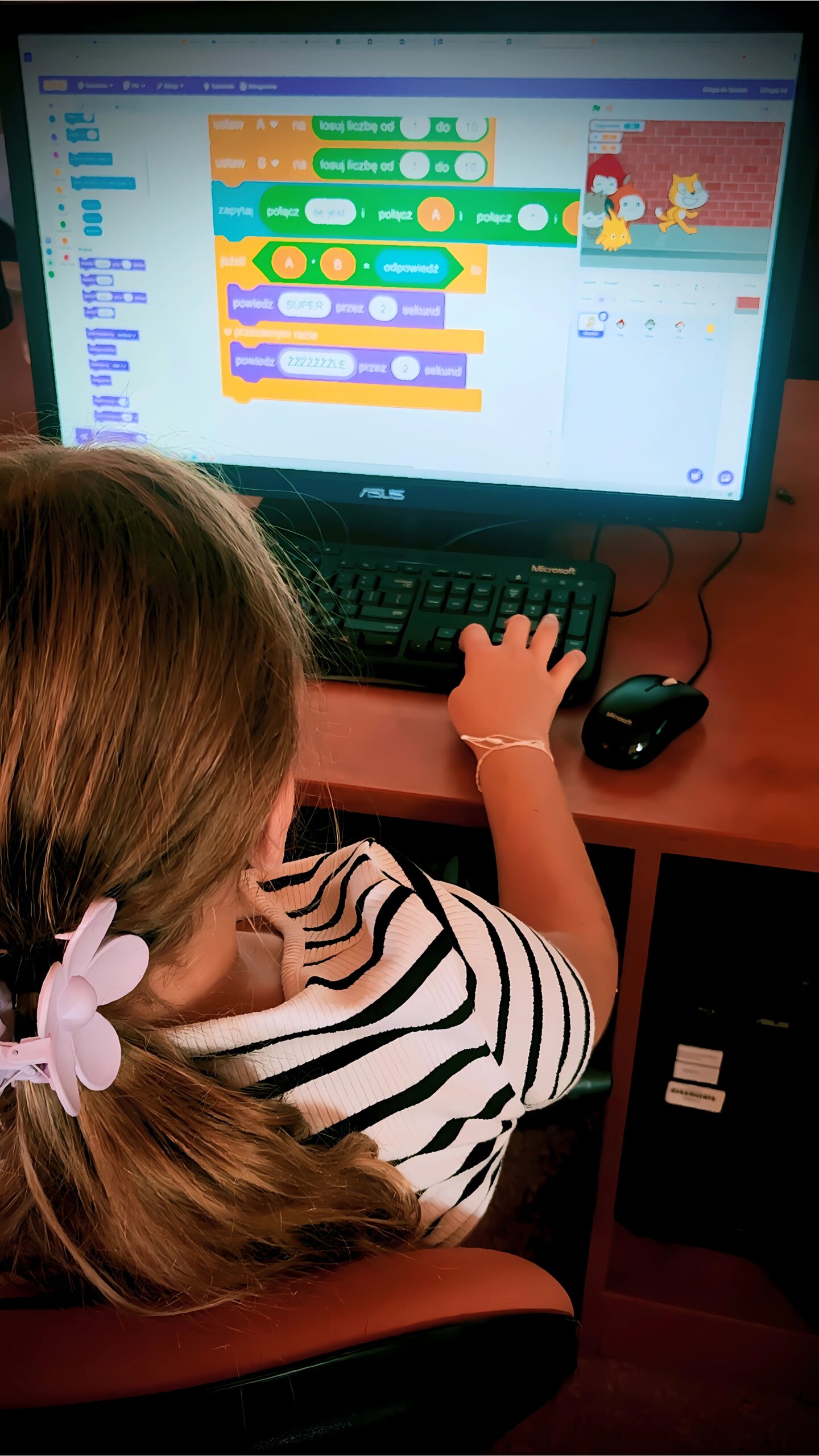 Uczestnicy mieli program dostosowany i skrojony na miarę. Od sztucznej inteligencji, przez programowanie, grafikę komputerową, projektowanie i druk 3D! Nawet projektowali własne światy, które wcześniej istniały wyłącznie w wyobraźni. To była niesamowita podróż, pełna wyzwań, ciekawości, z której rodziło się wiele pytań typu „Jak to zrobić?” oraz okrzyków radości: „Udało się! Działa”, czy „Patrzcie zrobiłem to sam!”.